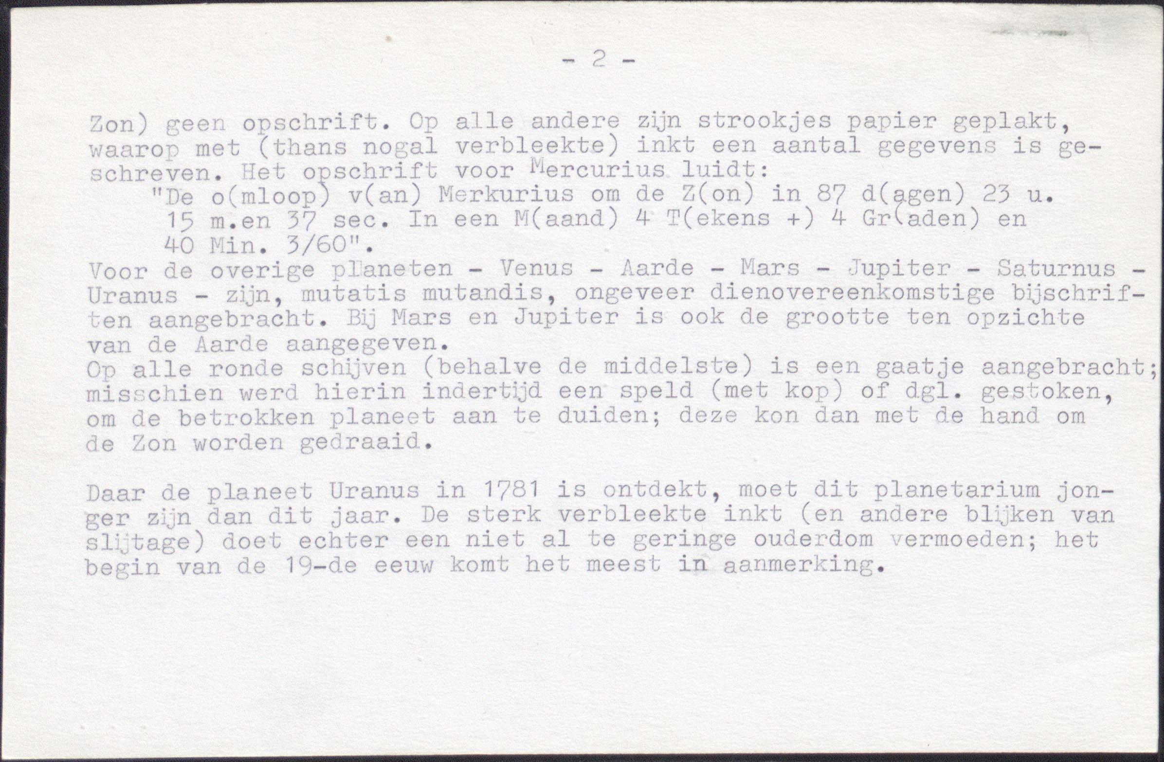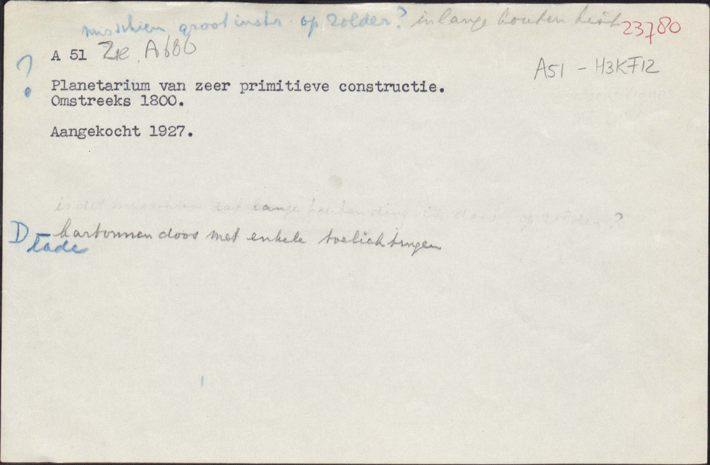 Korte omschrijvingDoos met planetarium, kaart en handgeschreven lijsten
