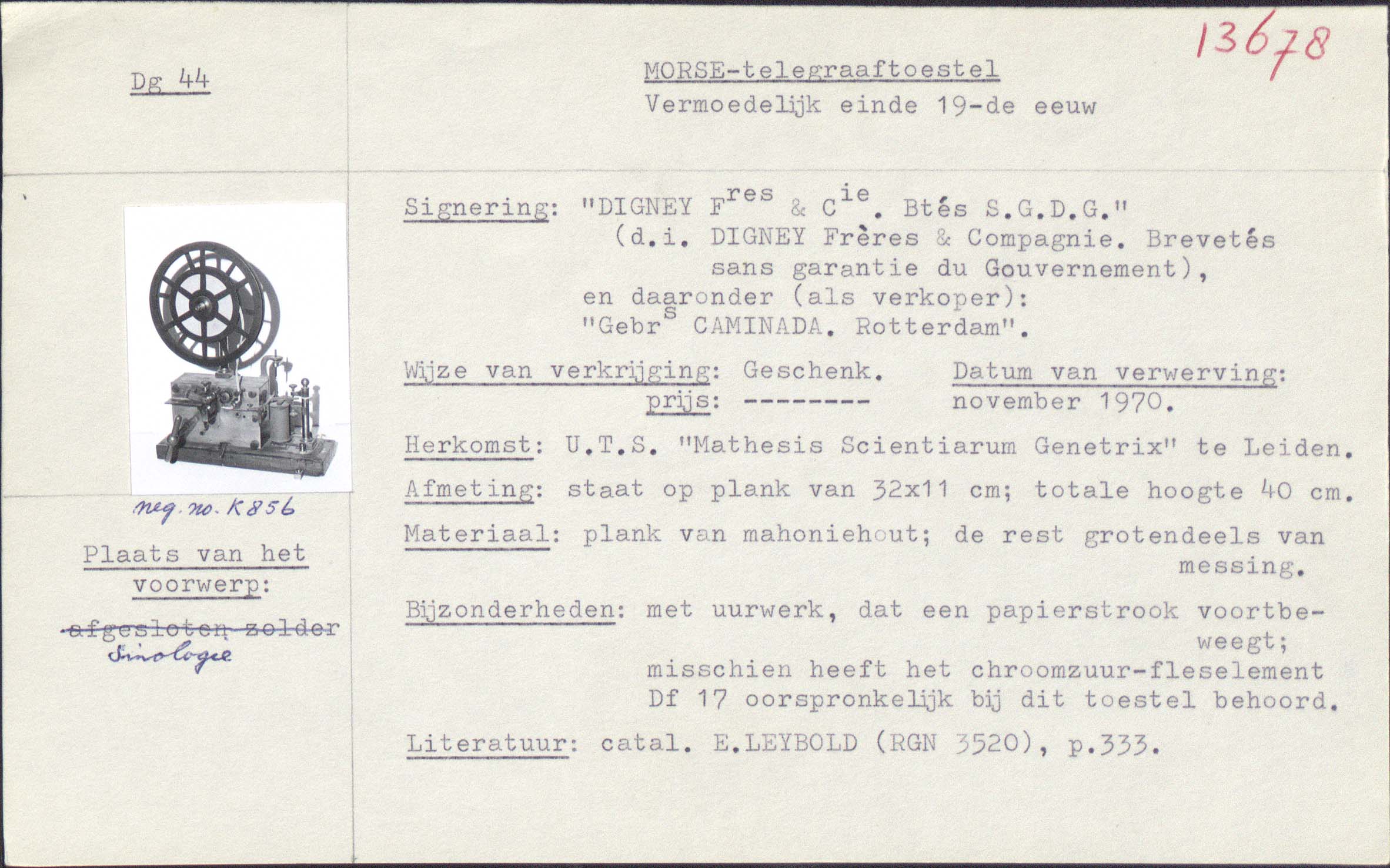 Korte omschrijvingMorse telegraaftoestel door Digny Frères & Cie Parijs, 1850-1900.